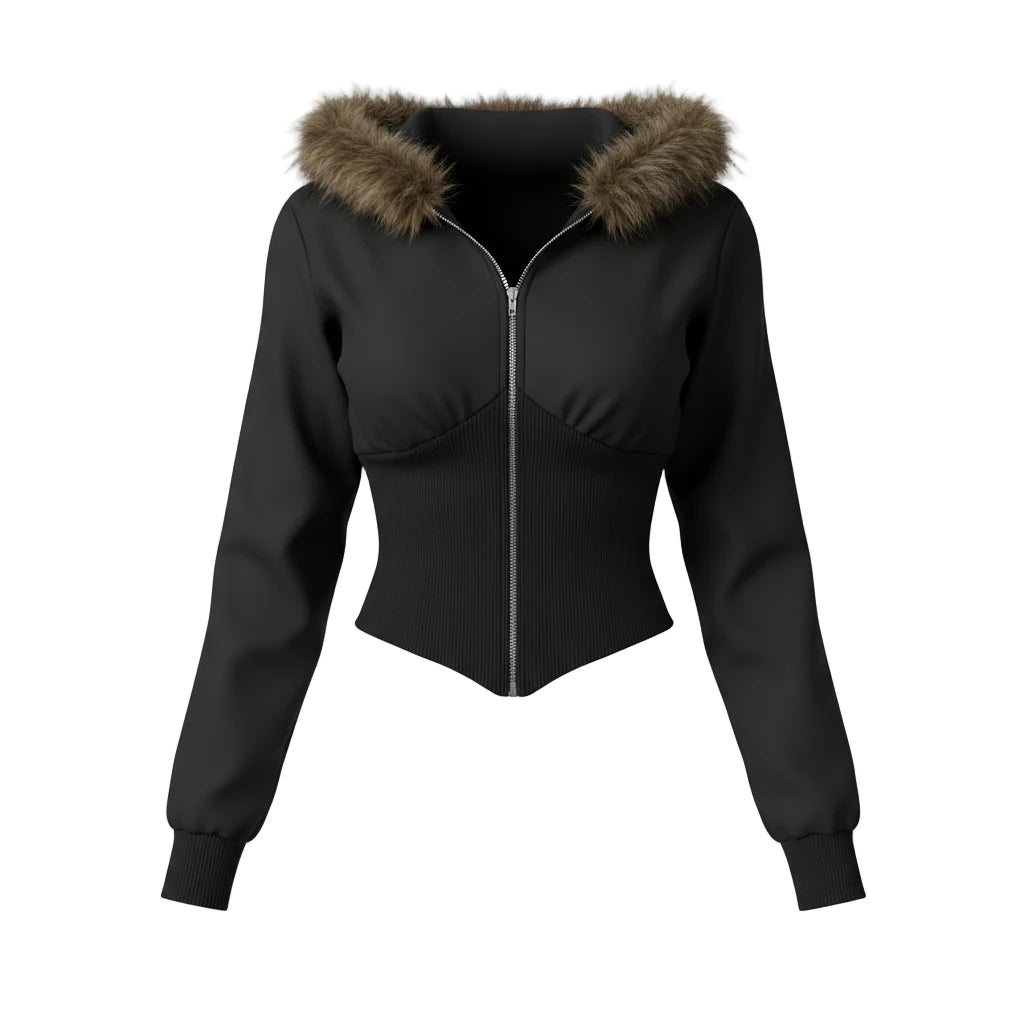 Erleben Sie den trendigen Y2K-Look mit dieser kurzen Jacke mit kuscheligem Kunstfellbesatz an der Kapuze. Das Grunge-inspirierte Design verleiht Ihrem Look ein markantes Statement, während die kurze Passform sie modern und vielseitig macht. Perfekt für den Lagenlook bietet diese Jacke Stil und Komfort für Ihre Alltagsabenteuer.