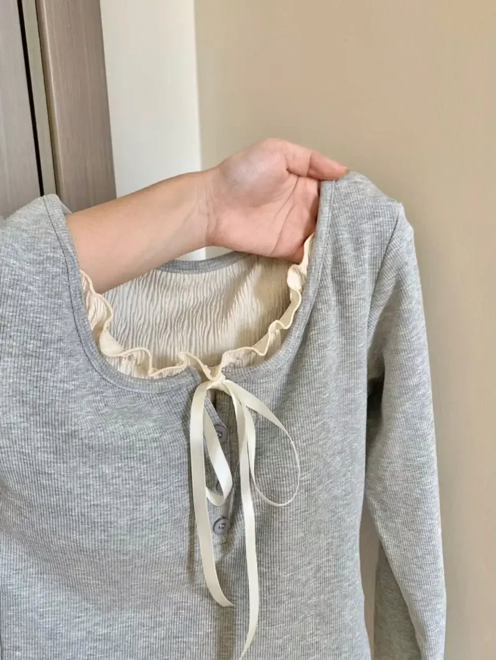 This Basic Lace Longsleeve combines timeless elegance with delicate detailing. The soft lace fabric offers gentle comfort, while the subtle bow accent adds a charming, coquette touch that enhances your feminine style effortlessly. Perfect for layering or wearing alone, it brings both sophistication and a playful flair to your wardrobe.